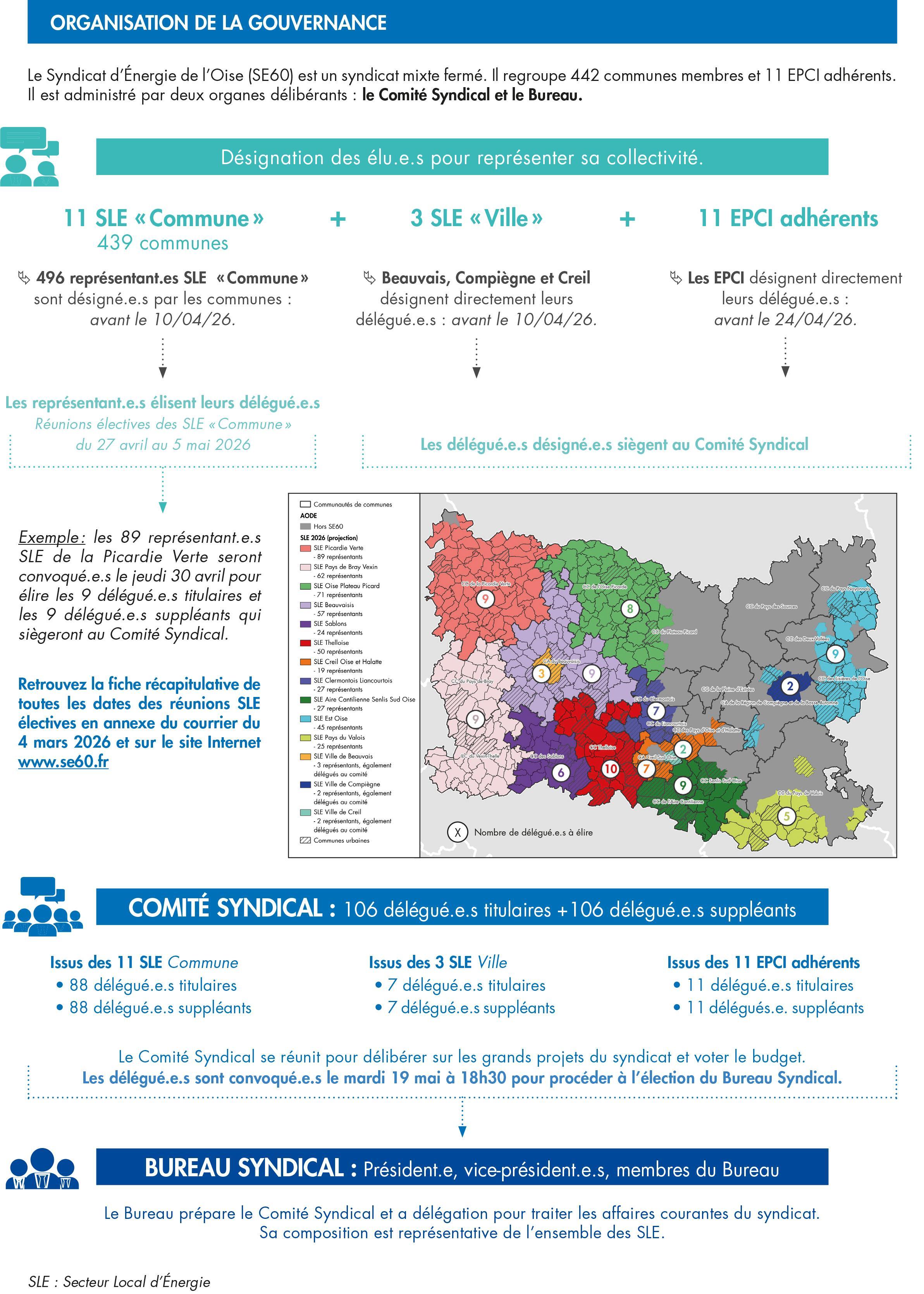 A ce titre, vous avez reçu un courrier en date du 4 mars vous invitant à saisir vos informations e avant le 10 avril 2026 via votre espace adhérent.Le Syndicat d’Énergie de l’Oise (SE60) est un syndicat mixte fermé. Il regroupe 442 communes membres et 11
