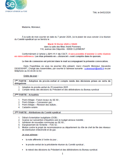 Convocation et documents - Comité syndical - 10/02/2026